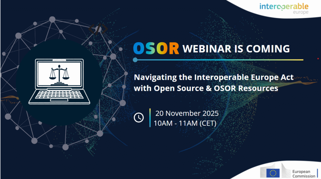 Το Παρατηρητήριο Ανοικτού Κώδικα (Open Source Observatory – OSOR) της Ευρωπαϊκής Επιτροπής προσκαλεί τις δημόσιες διοικήσεις σε ένα διαδικτυακό σεμινάριο αφιερωμένο στην Πράξη για τη Διαλειτουργική Ευρώπη και στον τρόπο με τον οποίο ο ανοικτός κώδικας μπορεί να συμβάλει στην εφαρμογή της. Η Πράξη για τη Διαλειτουργική Ευρώπη, που τέθηκε σε ισχύ τον Απρίλιο του […]